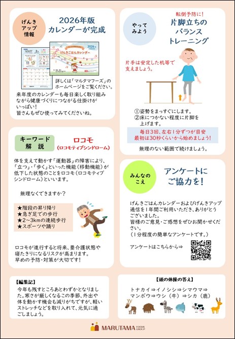 2026年フレイル予防のためのげんきごはんカレンダーが出来ました! | 株式会社マルタマフーズ